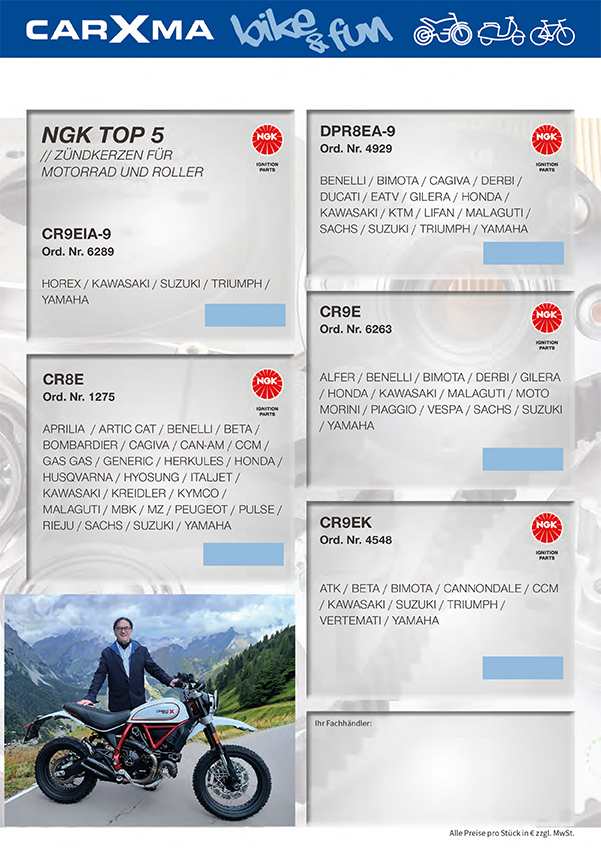 Gehen Sie mit carXma an den revolutionären Start mit außergewöhnliche Aktionen für Ihre Zweirad-Fans. Bestimmen Sie die Preise aus unserer Aktion für Ihre Motorrad-, Roller- und Fahrrad-Kunden selbst.