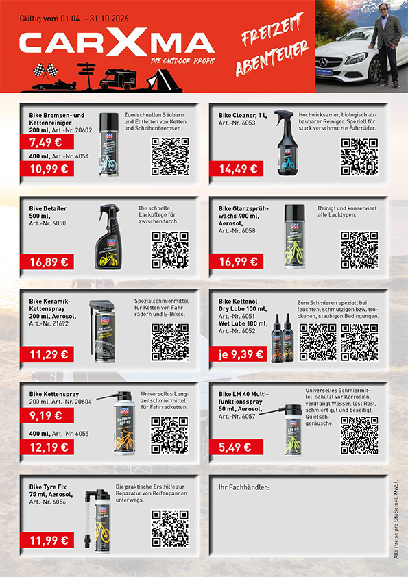 Der Frühling naht und hier kommen die Angebote für unsere Naturliebhaber. Sei es im Fahrrad oder Campingbereich – für unsere Outdoor-Fans ist bestimmt ein attraktives Schnäppchen dabei!